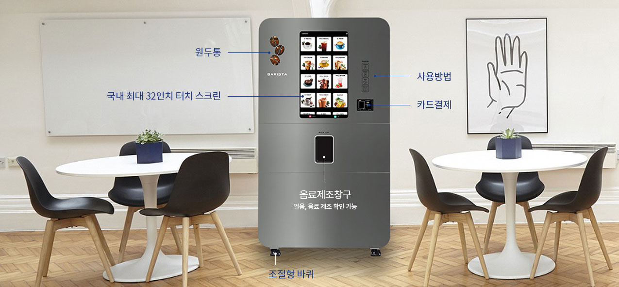 - 제빙기, 커피머신, 디스펜서 분리형이 아닌 일체형 머신으로